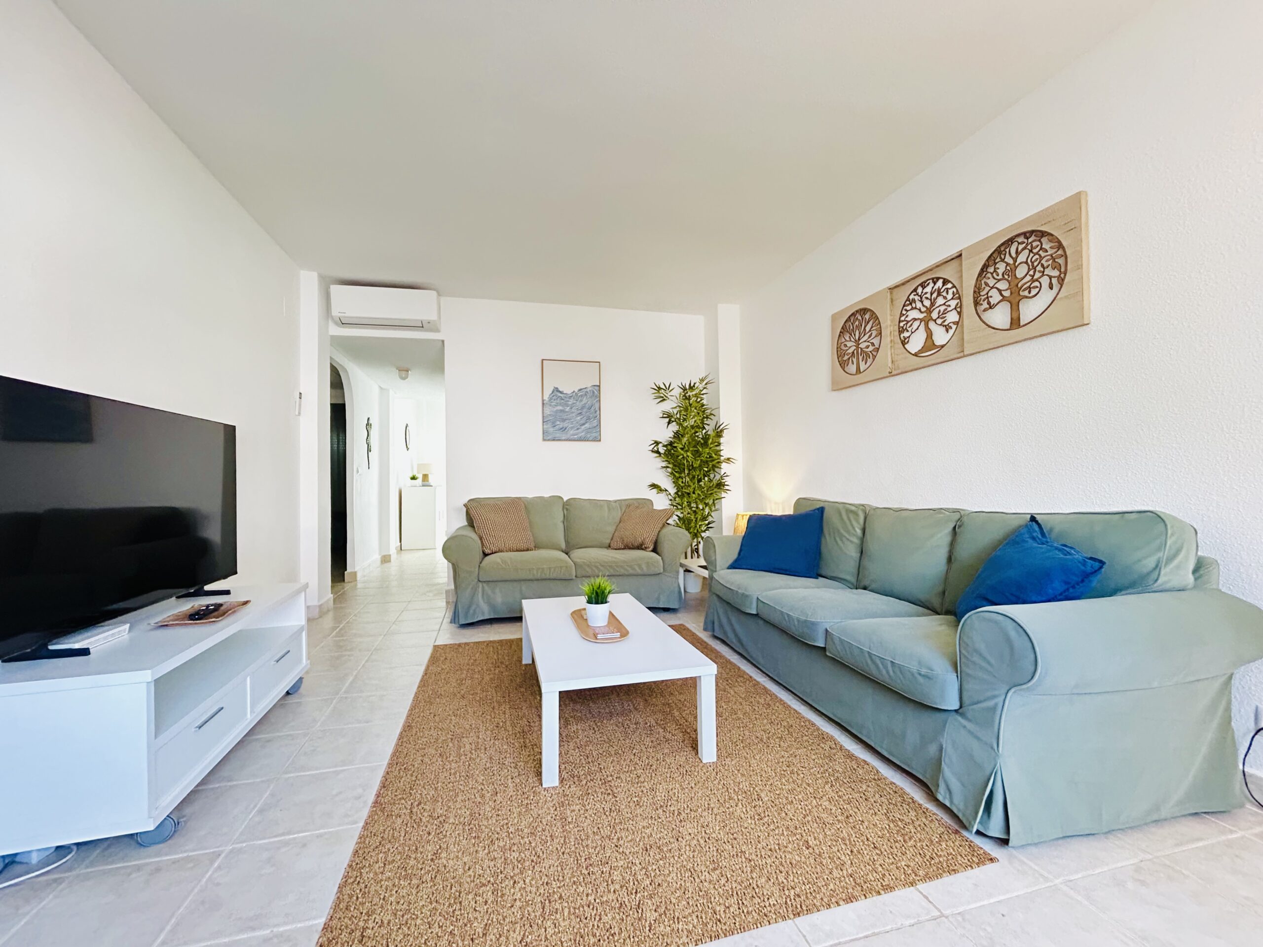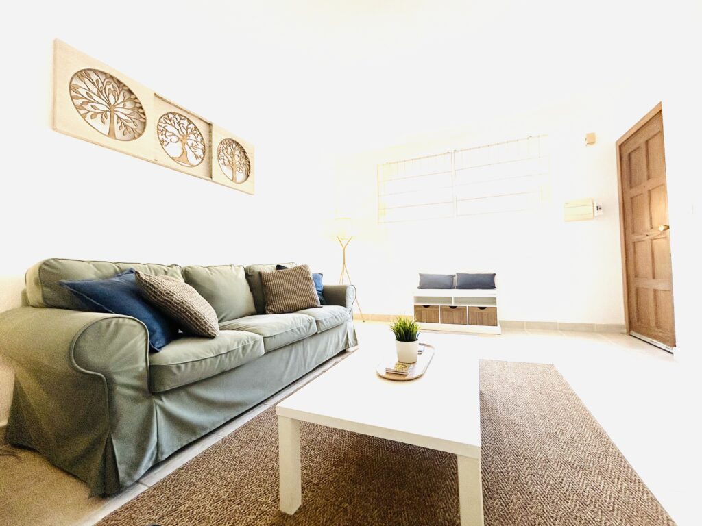 Theres comfy seating for 4 on brand new sofas and a large flat screen TV with a full range of English TV and sport for those that dont want to miss the important footie, golf or tennis events. Unlimited wifi and air con keep you cool during the day.