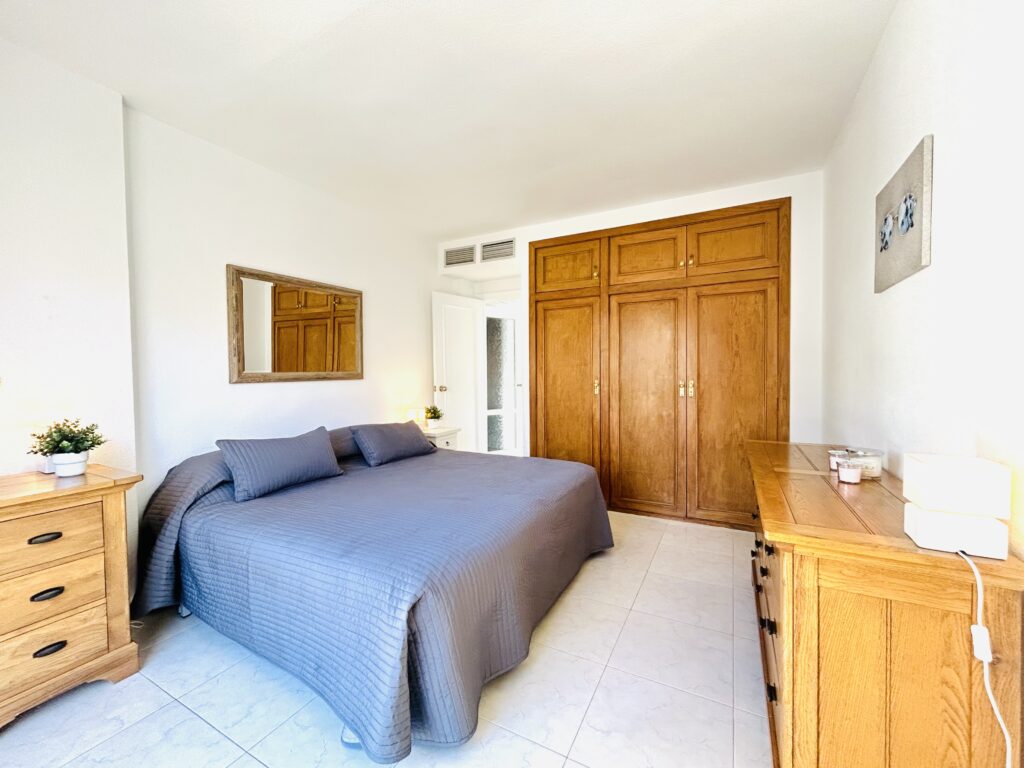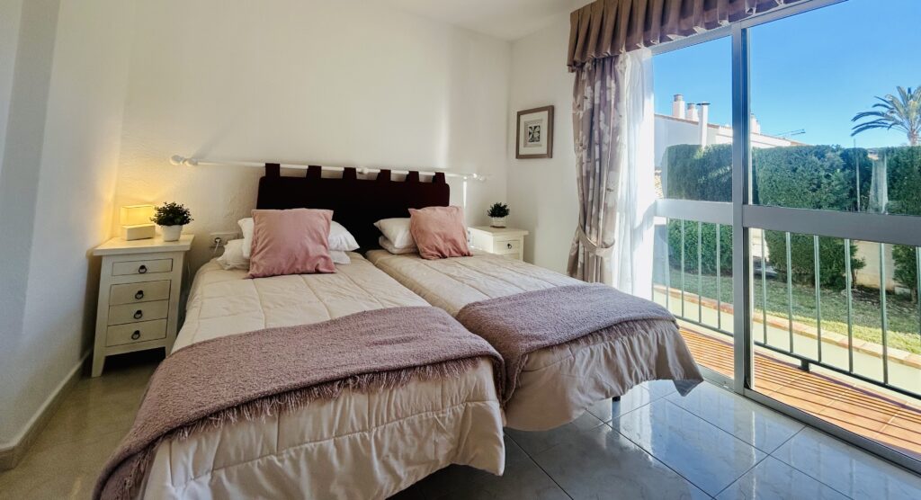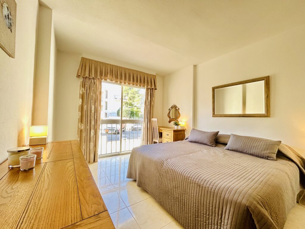 The primary bedroom is large and features a lot of natural light. There are twin beds that can be easily adapted to superking if required. A large chest of drawers takes centre stage and there is a dressing table as well. The bed is shouldered by bedside cabinets.