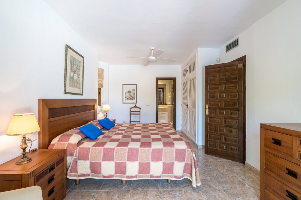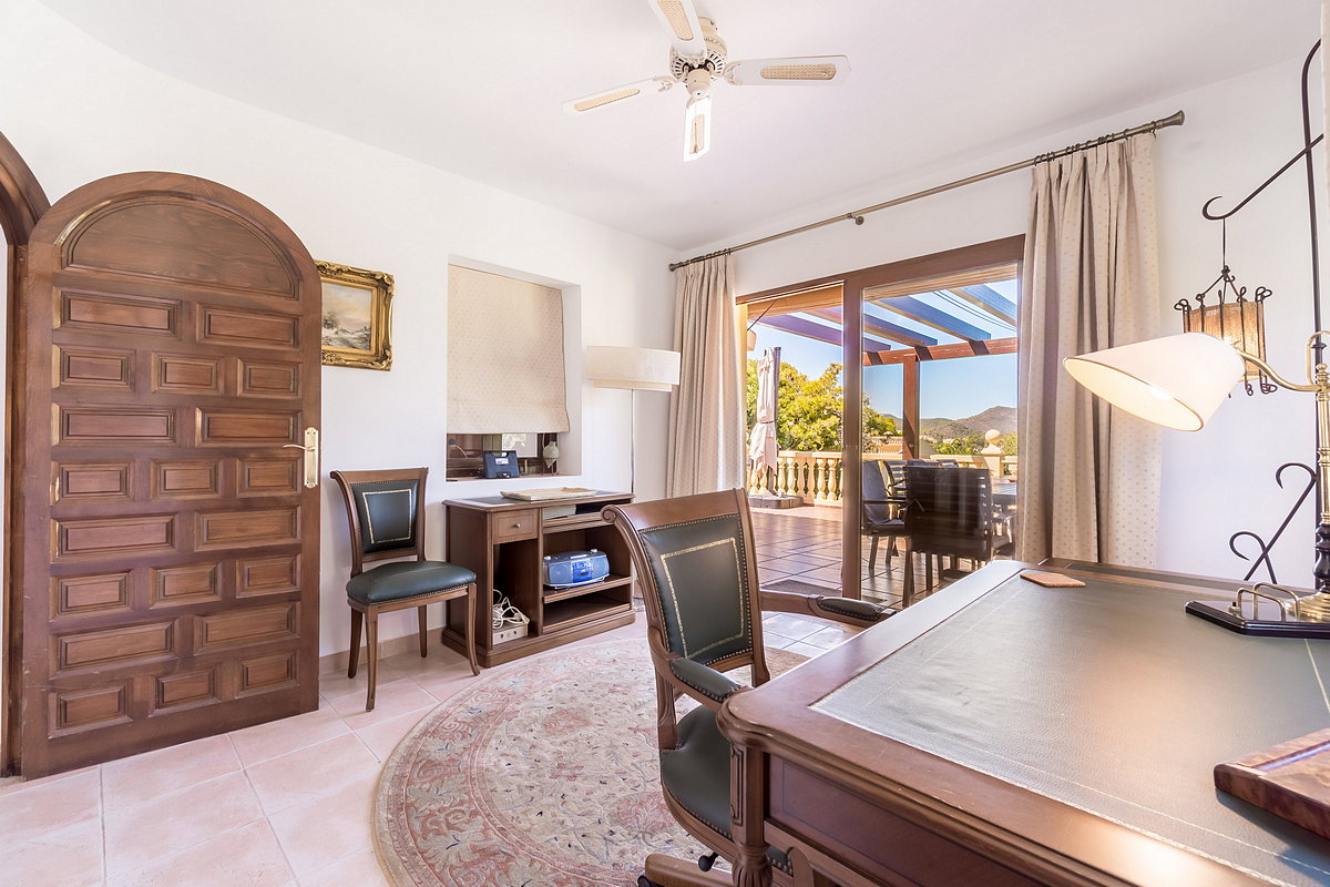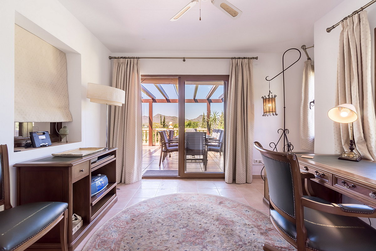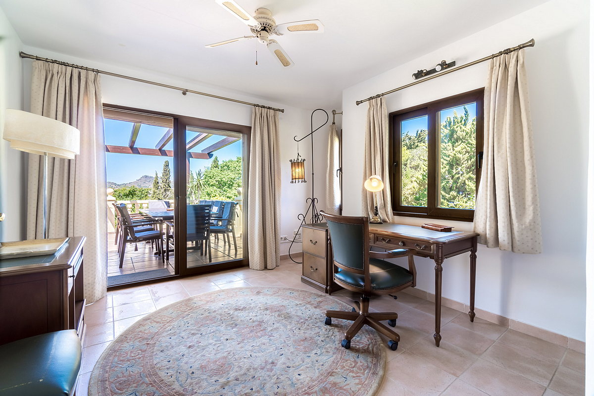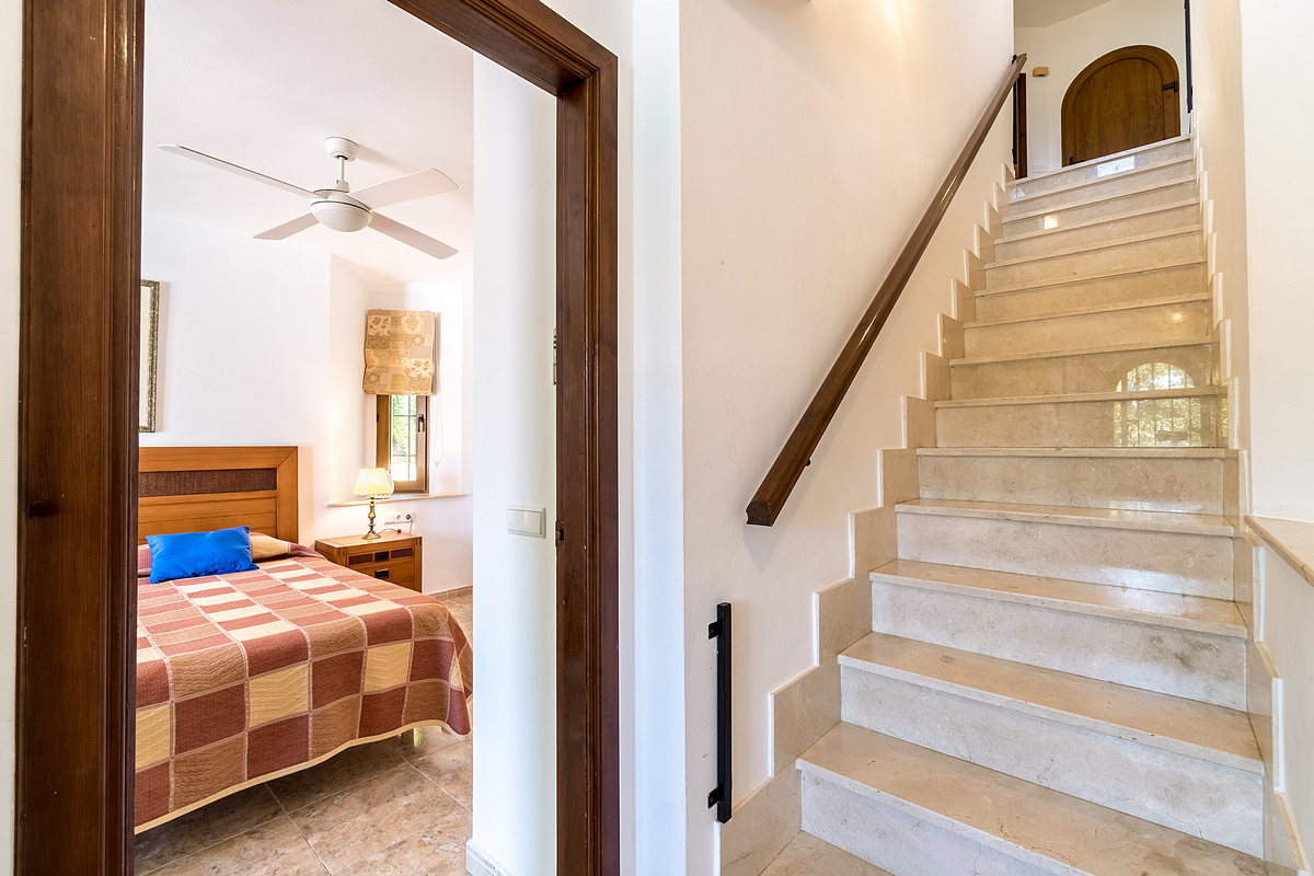 At the far end of the dining area is a staircase leading up to a spacious en-suite bedroom with its own private terrace and beautiful views.