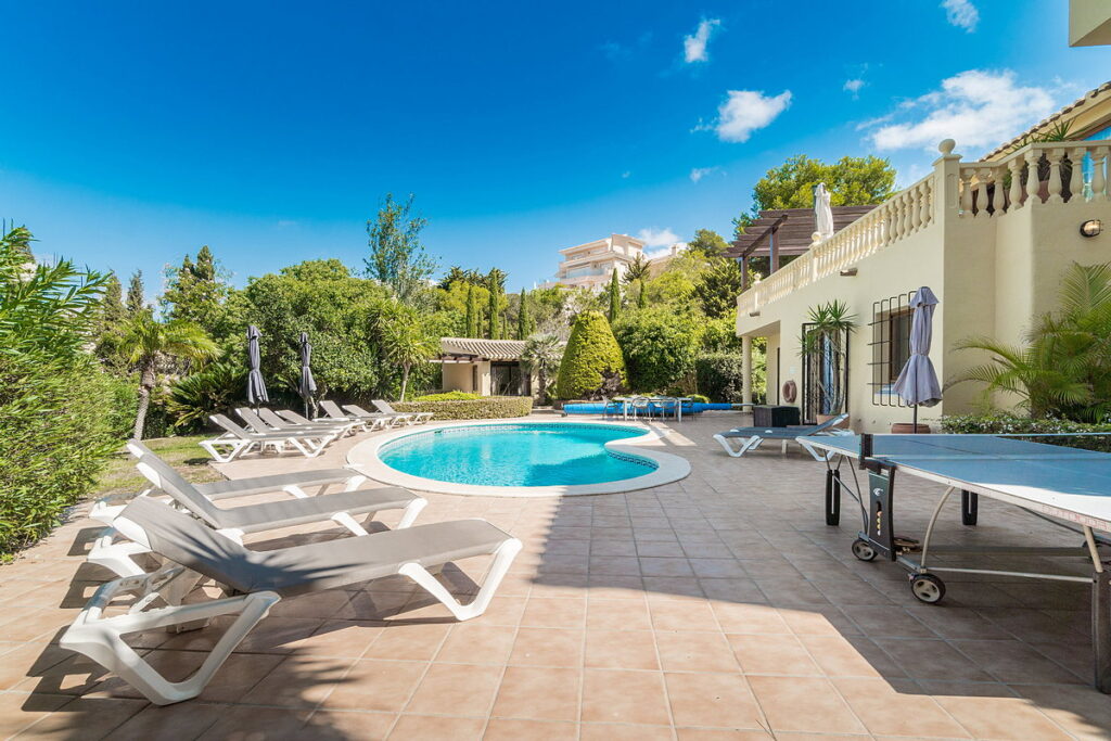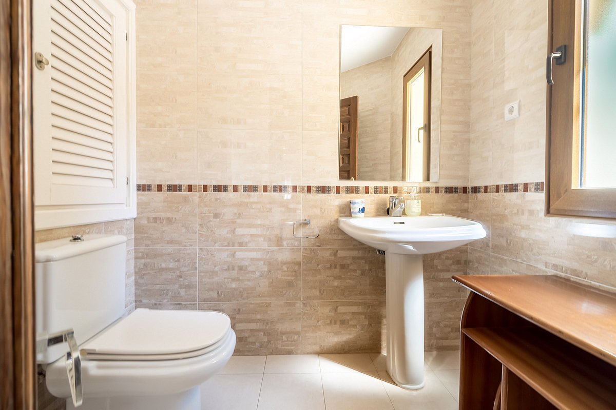 The property is equipped with reverse air conditioning in all rooms and underfloor heating in both the dining area and the top-floor bedroom. All windows are double-glazed and made of durable PVC. The swimming pool includes heating and a cover to help maintain the temperature. In addition, both staircases feature built-in child safety gates, ensuring a safe environment for families with young children.