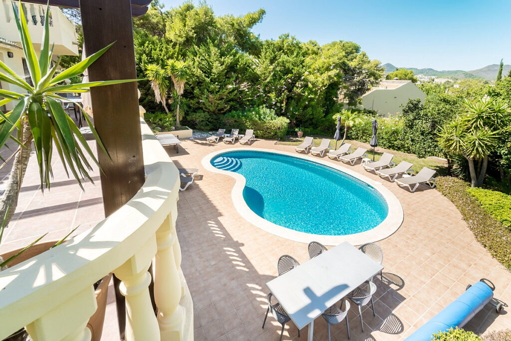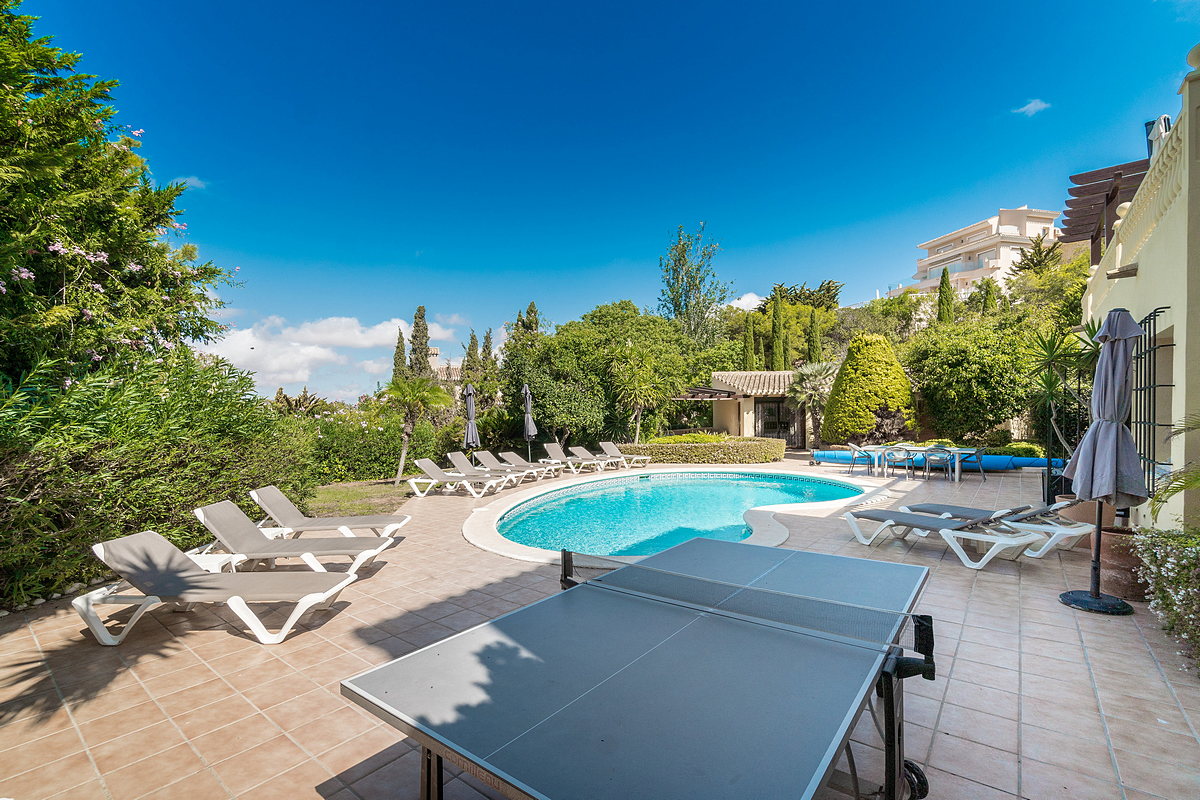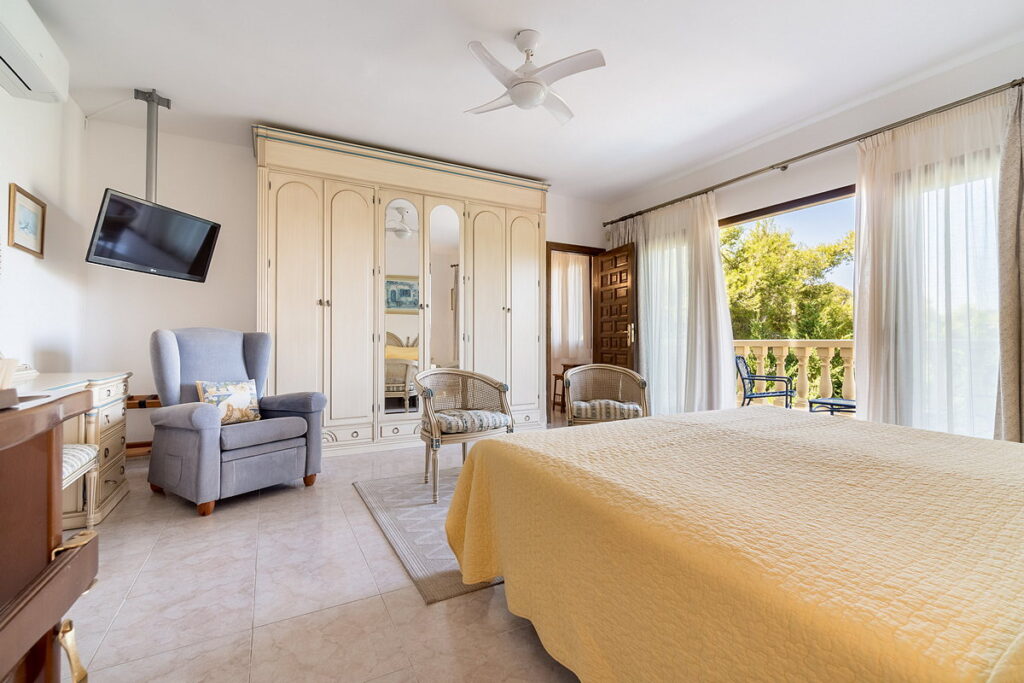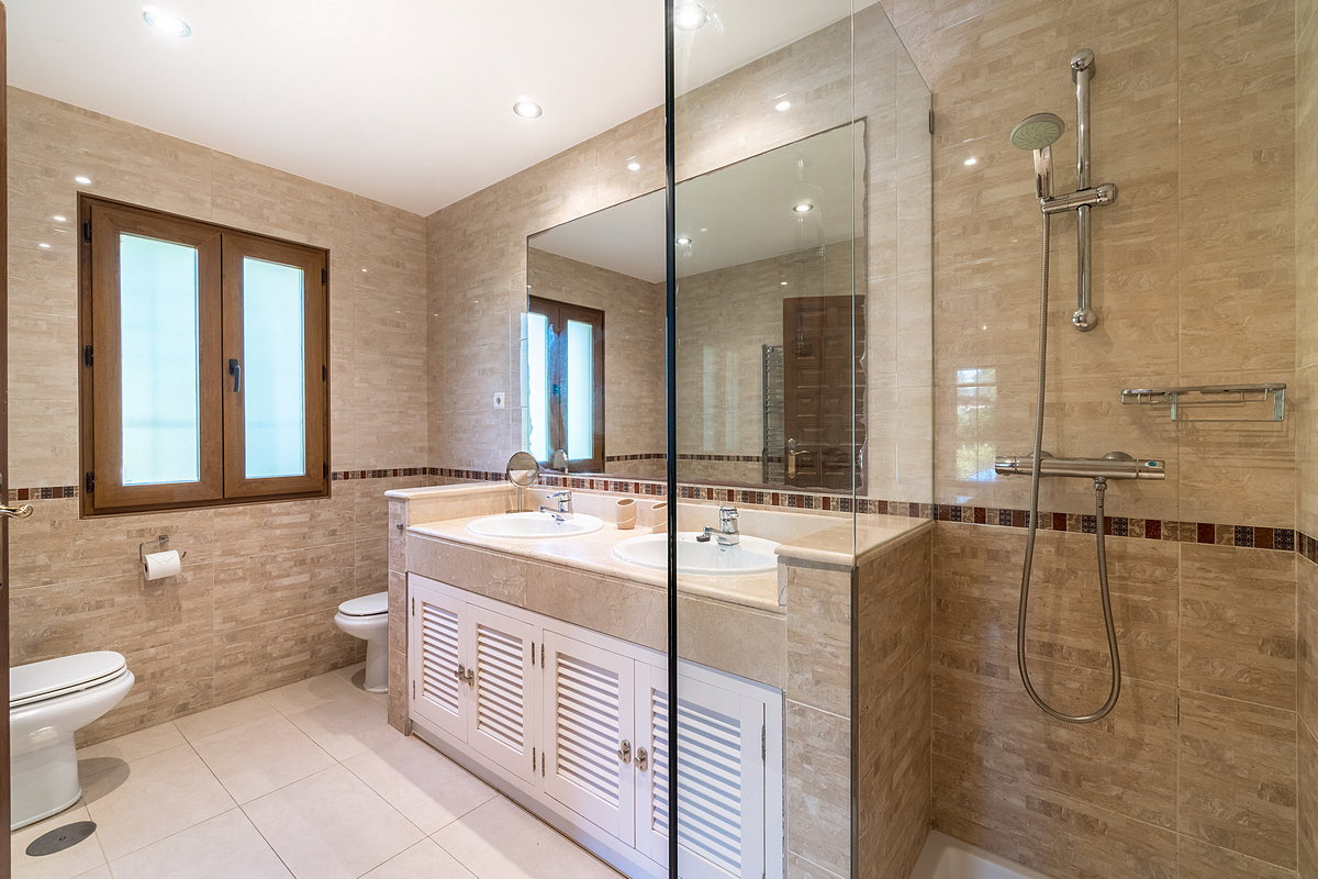 To the right of the pool, there is an annex with another en-suite bedroom and a private terrace, also covered with a pergola and retractable canvas awning. Next to the annex, there is an additional toilet and shower for pool users’ convenience.