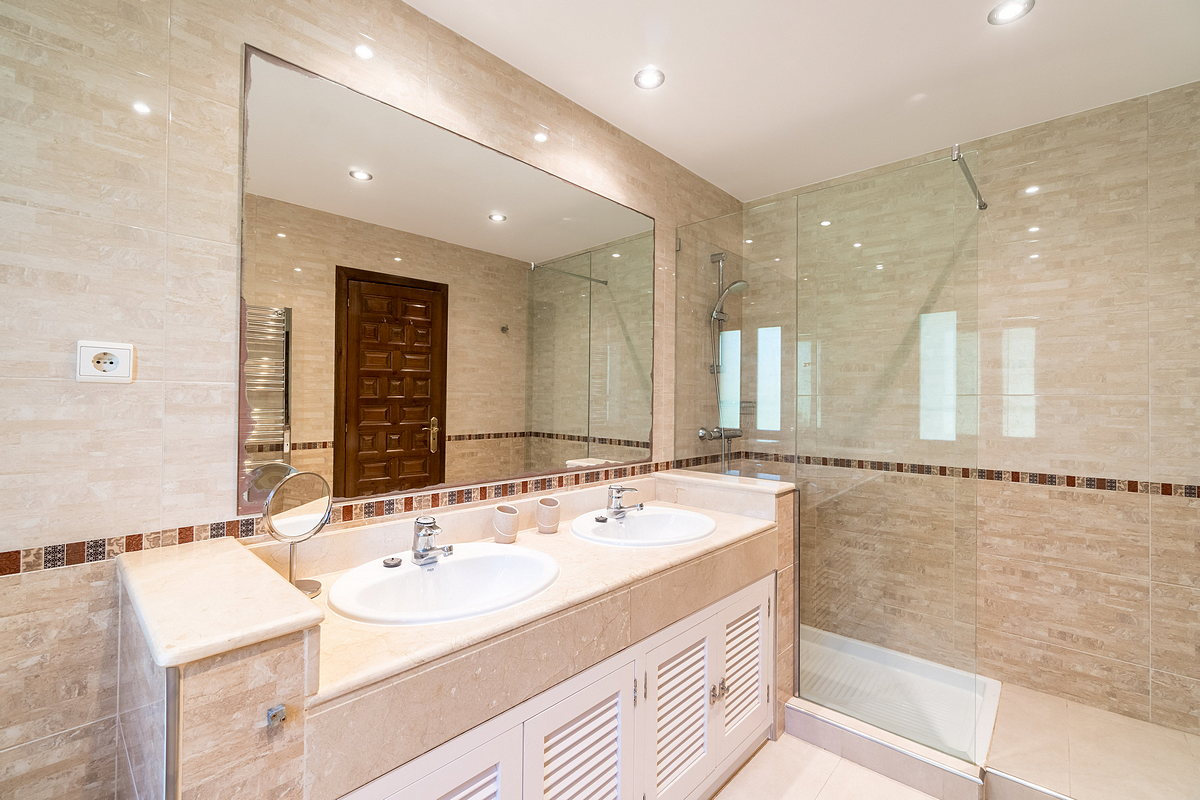 On the lower level, there is direct access to the pool terrace, along with four en-suite bedrooms — all with access to the terrace — and a second living room.