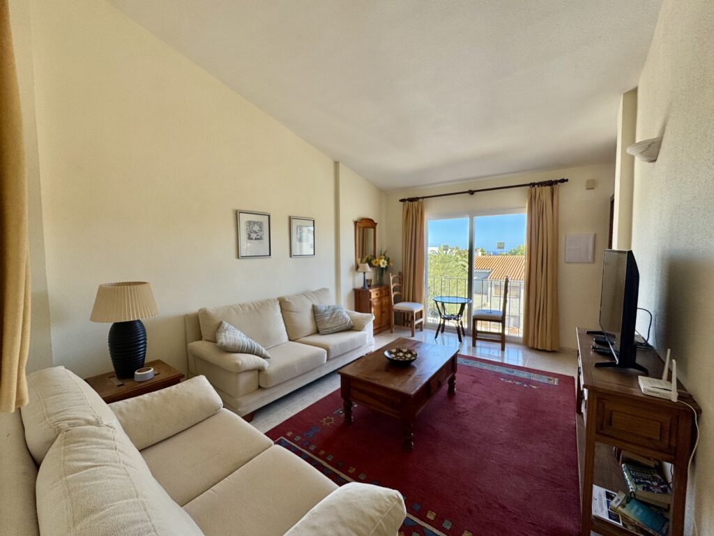 On entering you will find a generously sized lounge filled with natural light, this inviting space is perfect for relaxing with family, entertaining guests, or simply unwinding after a day in the sun. The two well-proportioned bedrooms each have their own bathroom providing versatility and privacy. Residents of this community also benefit from access to a beautifully maintained communal pool, separate children´s pool, seasonal restaurant and park area, the perfect spots to cool down and soak up the Mediterranean sunshine.