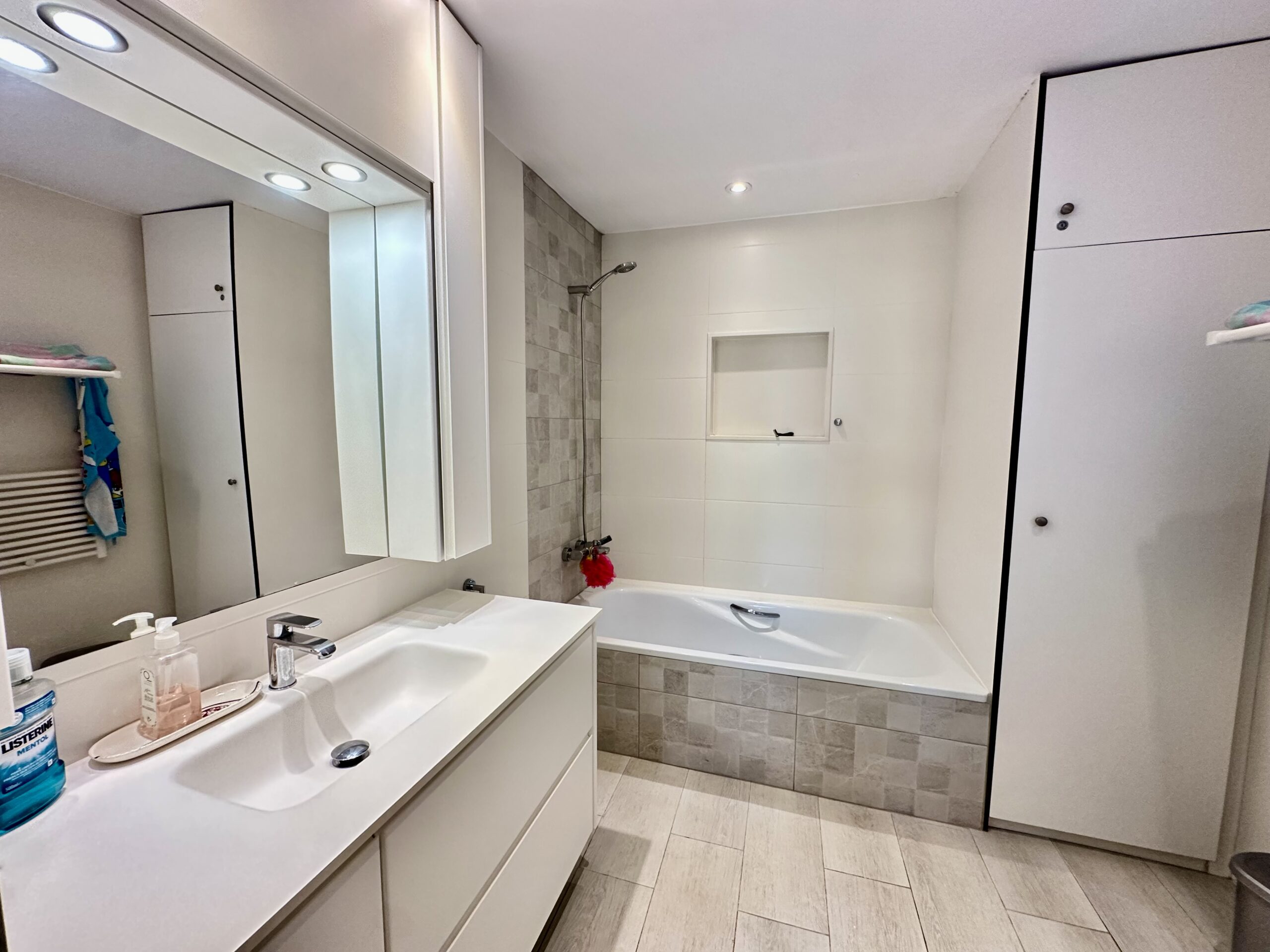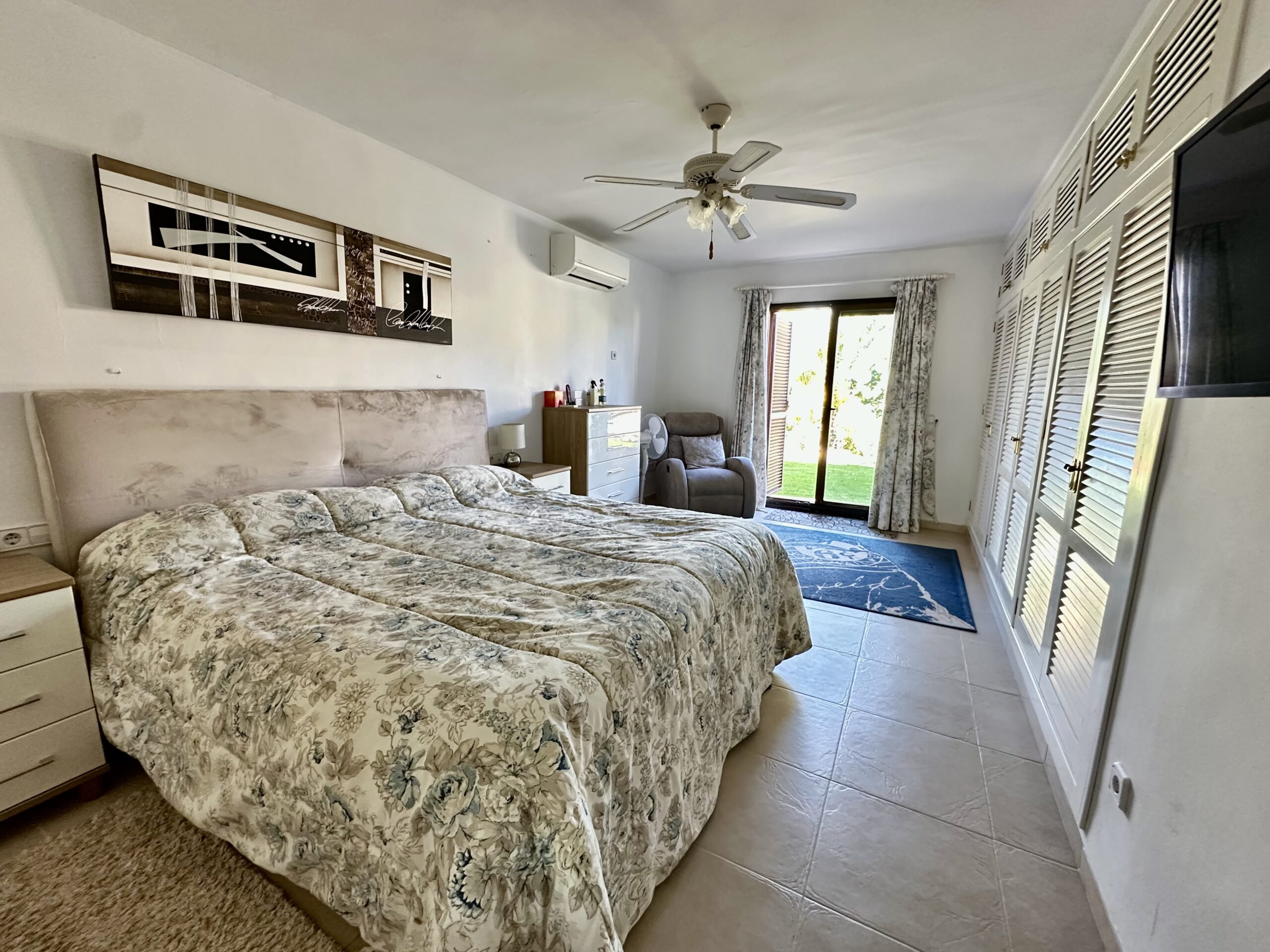 Descending to the lower level, you’ll find three generously sized bedrooms, each with its own bathroom, ensuring comfort and privacy . Two of the bedrooms open directly onto the beautifully maintained communal gardens, providing easy access to the communal swimming pools available exclusively to El Rancho residents.