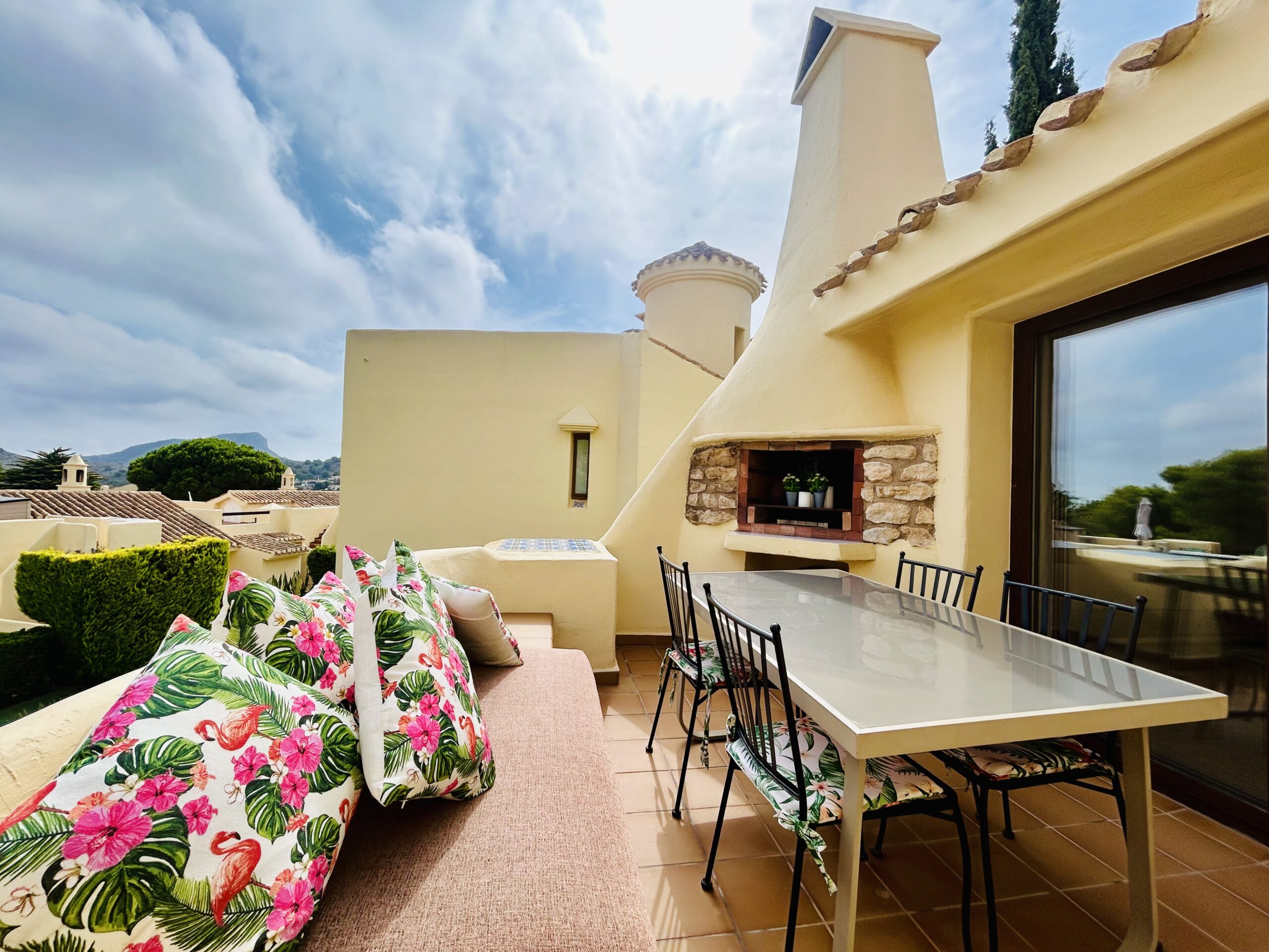 Entering into this refurbished property you immediatley feel at ease and in holiday mode.  The lounge has seating for 4 with a sofa and easy chair.  The large TV is wall mounted for easy viewing and features a full range of English Channels and sport so you wont miss out on your favourite soap or sporting event whilst here.  Patio doors take you out to a furnished sun terrace with a dining table and built in BBQ.  Dine al-fresco in the balmy night air and watch the world go by whilst enjoying a glass of something chilled. During the winter months you can take full advantage of the working fireplace.
