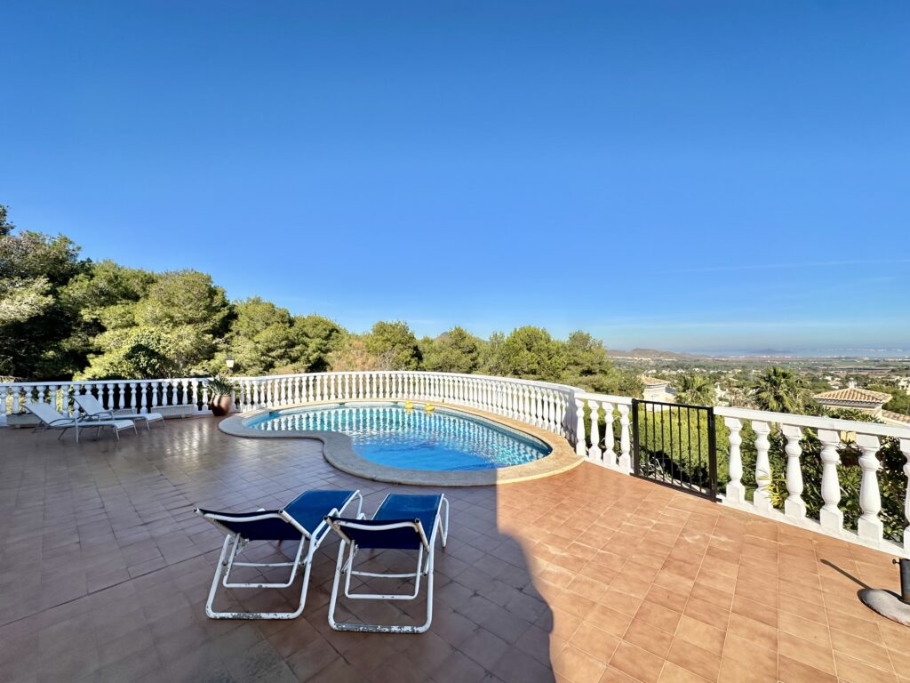 This immaculately presented, spacious 4-bedroom villa is perched on an elevated position, offering breath taking views of the surrounding landscape across La Manga Club and extending to the Mar Menor and Mediterranean Sea.